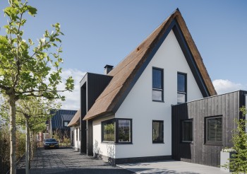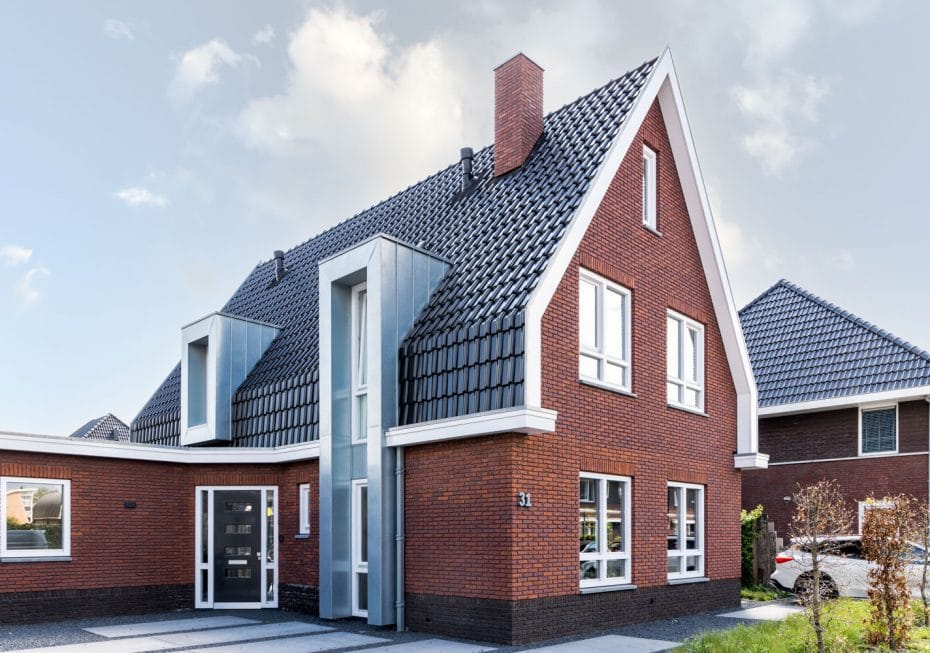 De woning van de fam Dekker staat in de nieuwbouwwijk Herenweide te Spanbroek. Tussen de veelal traditionele jaren 30 modellen en herenhuizen staat deze eigentijdse mansarde woning. Het verticale pannendeel te samen met de steile dakhelling geven een geheel eigen vorm aan de mansarde vorm. De moderne en rijke uitstraling zit hem in de toevoeging van fraaie metselwerk details en sterk geaccentueerde zinkkaders.