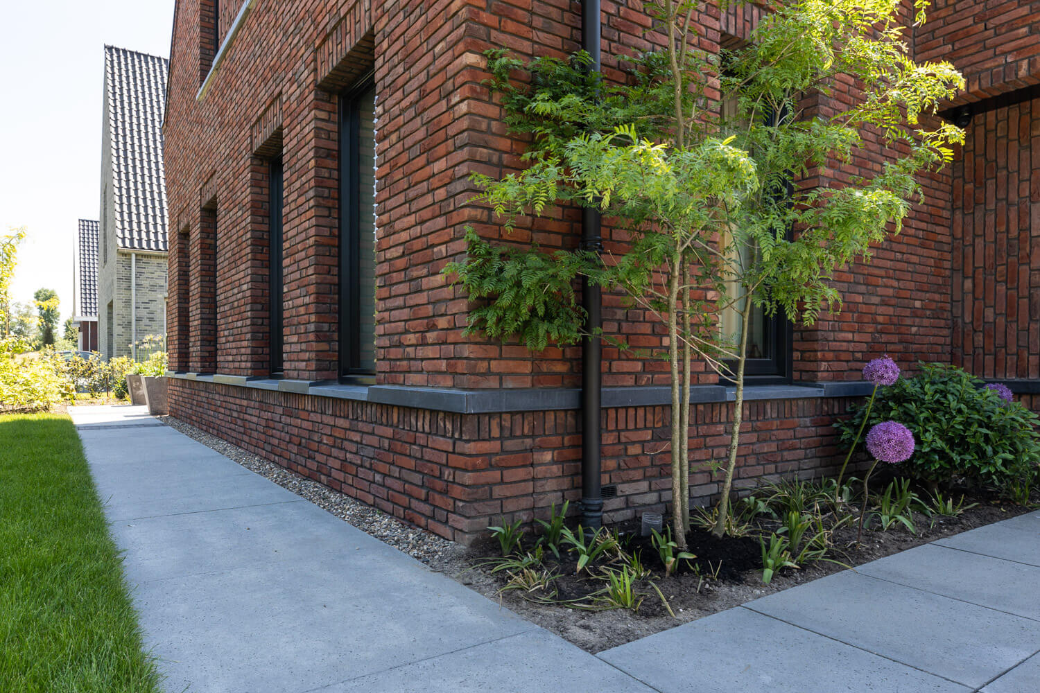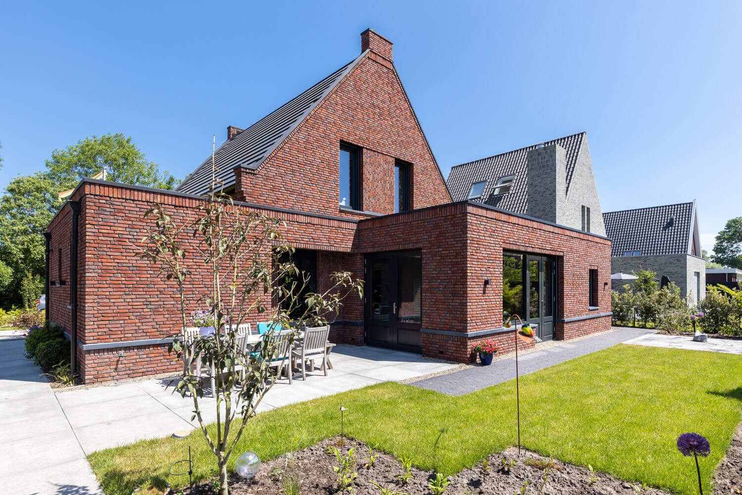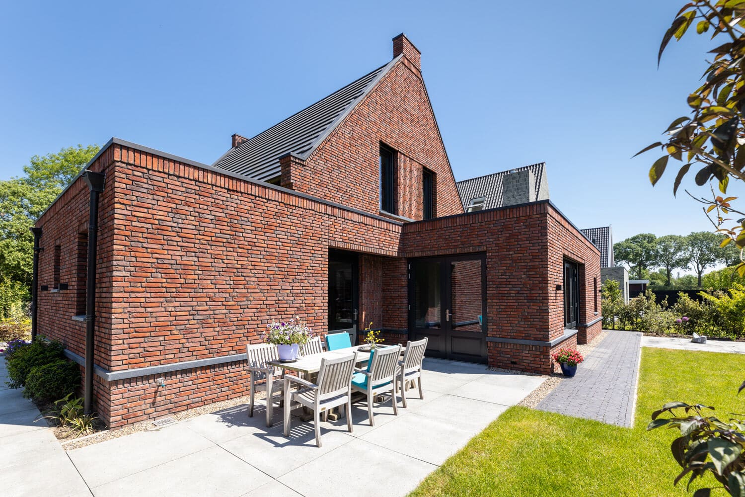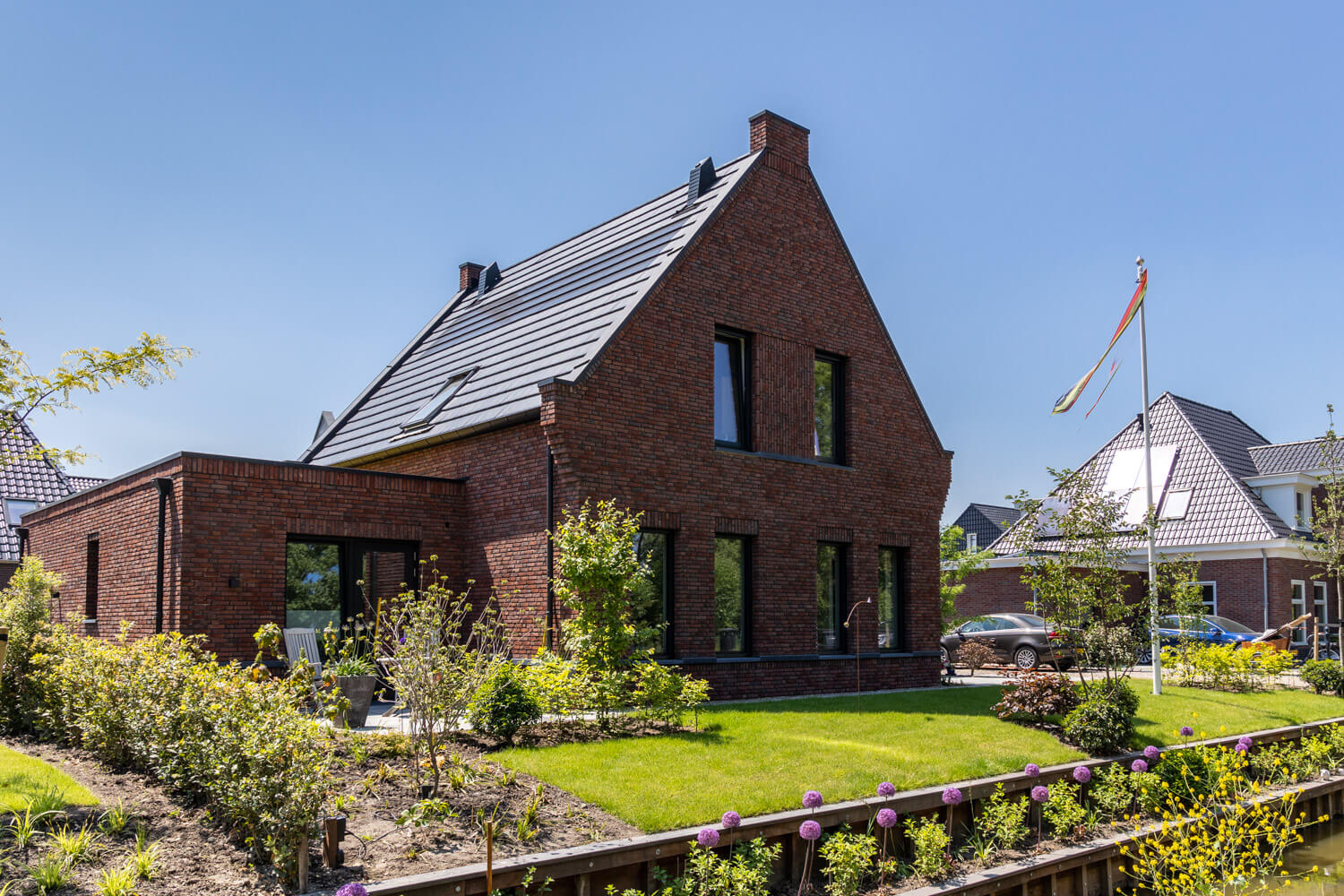 In de Beemster Polder wordt deze moderne notariswoning gebouwd met rijke metselwerkdetails en natuursteen spekbanden en zinken dakrand afdekkerst. Het leeuwendeel van het programma bevindt zich hier op de begane grond, waardoor het hoofdvolume zich heeft uitgebreid in de breedte van de kavel. De woning is voorzien van een grondgebonden warmtepomp waardoor er naast verwarming ook gekoelt kan worden. Het volledige dak wordt voorzien van in-dak pv panelen die helemaal opgaan in het pannendak.