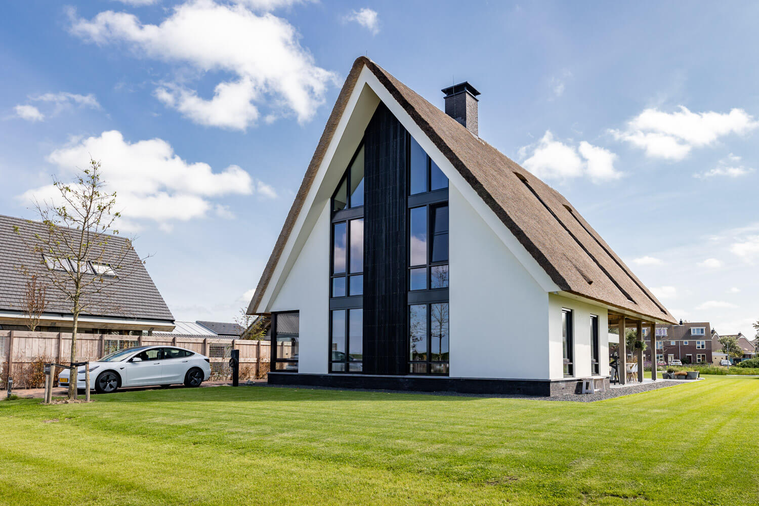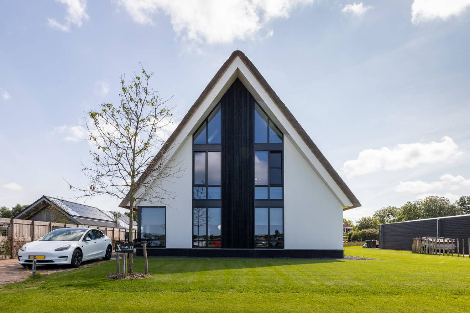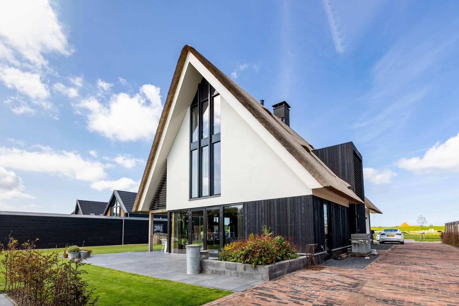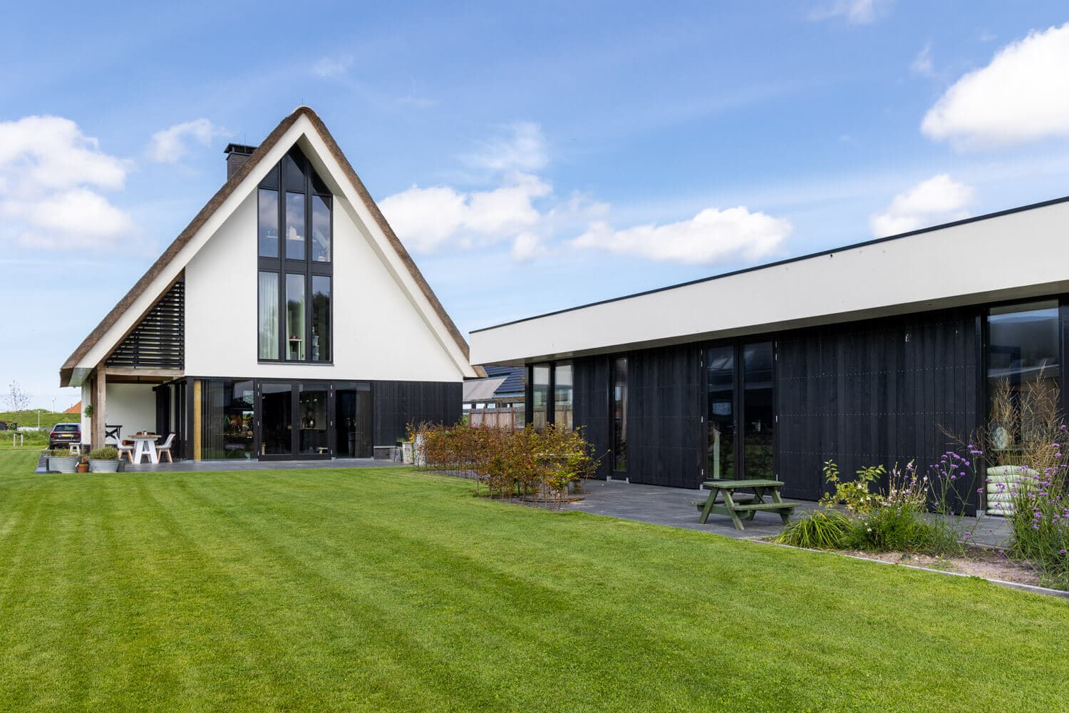 Aan de Hargerweg in Groet komt op een steenworp afstand van het strand en de duinen een prachtige landelijk moderne woning. Een Stucwerk gevel gecombineerd met zwarte houten delen en een rietgedekte kap welke rust op een eiken spantconstructie maakt het landelijke karakter van deze woning. De strakke, maar vooral heldere vormentaal geven de woning een volledig eigen identiteit.