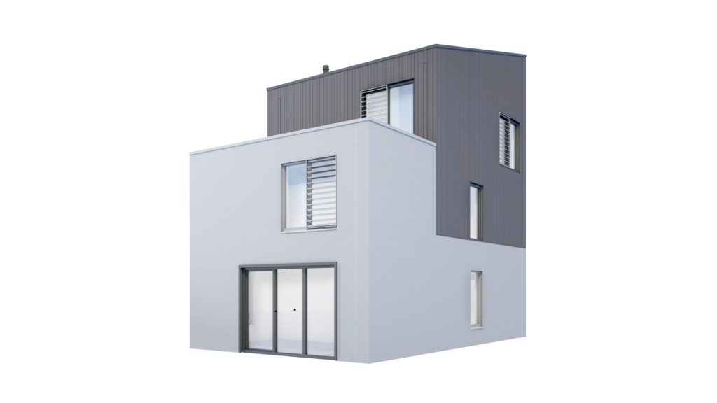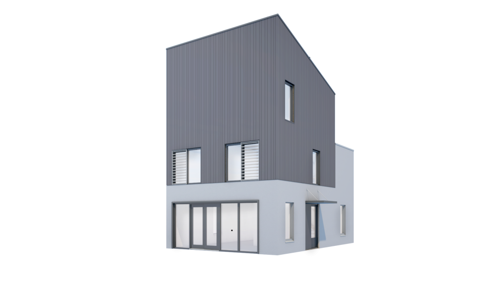 Het ontwerp voor de 6 vrijstaande woningen hebben we benaderd vanuit een stedenbouwkundig perspectief, waarbij we het belangrijk vinden dat elke woning een identiteit krijgt. Eenheid in verscheidenheid. 3 type woningen die door het spiegelen van volumes, of een andere uitvoering van het dak, zorgen voor een subtiele stedenbouwkundige diversiteit. Hierdoor ontstaan ogenschijnlijk zes verschillende woningen.Het streven naar een eigen identiteit voor elke woning hebben we doorgezet in de materialiseren.