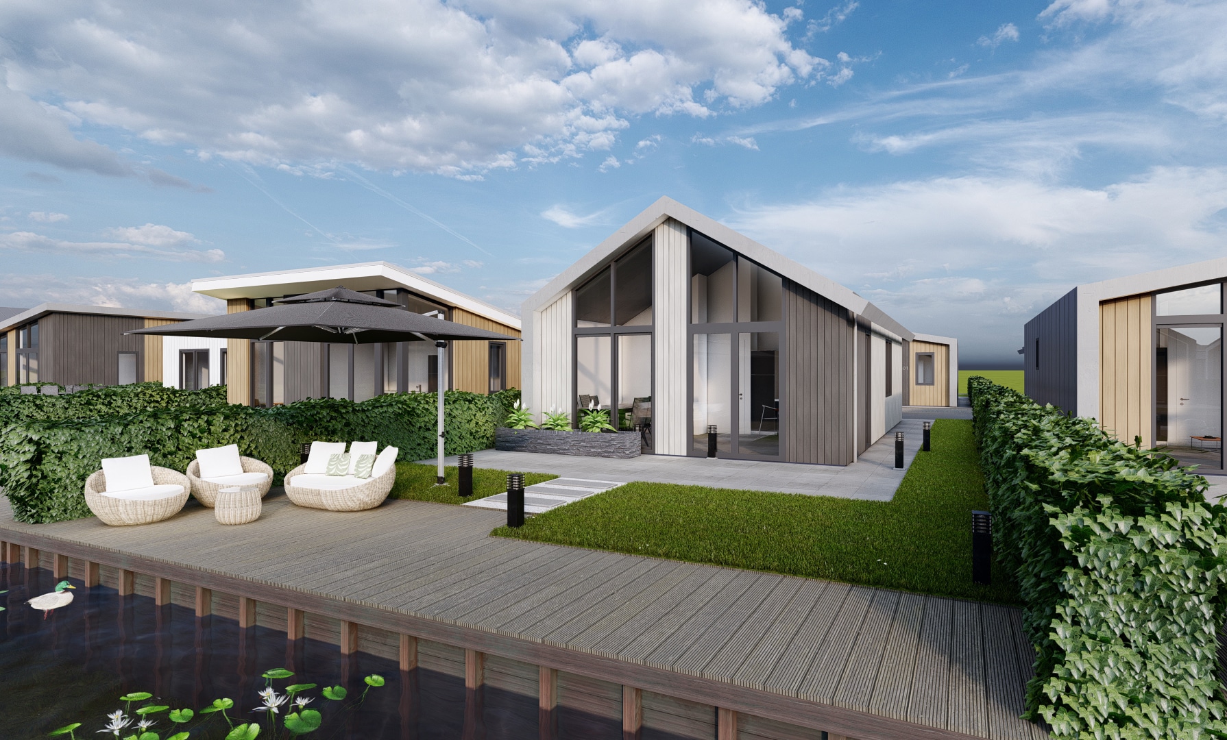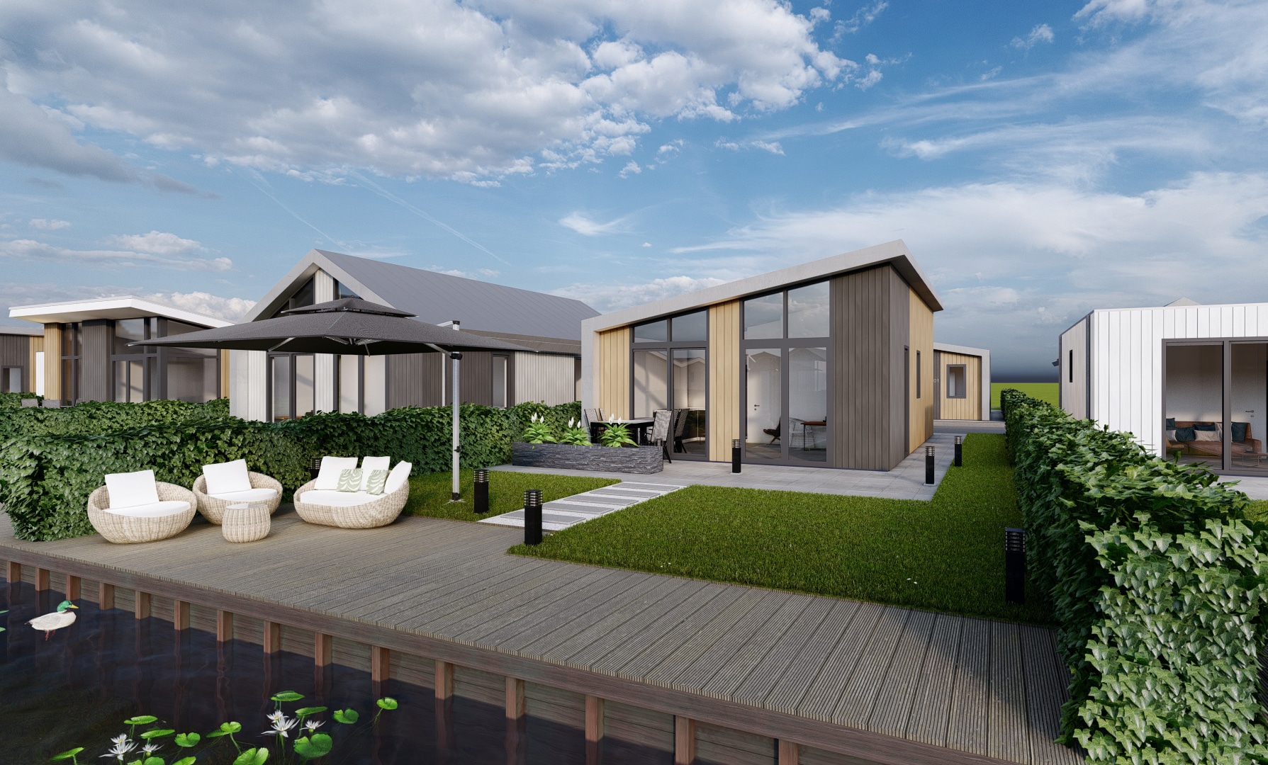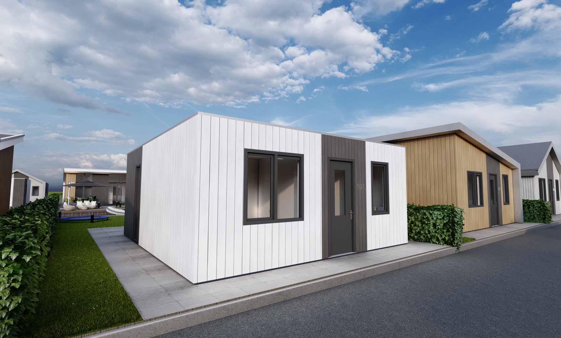 Op recreatiepark De Groote Vliet worden de komende jaren tientallen nieuwe recreatiewoningen gebouwd. De eigenaren waren op zoek naar nieuwe varianten die passen bij deze tijd. Studio S3 heeft binnen de kaders van de gemeente 4 moderne recreatiewoningen ontworpen.