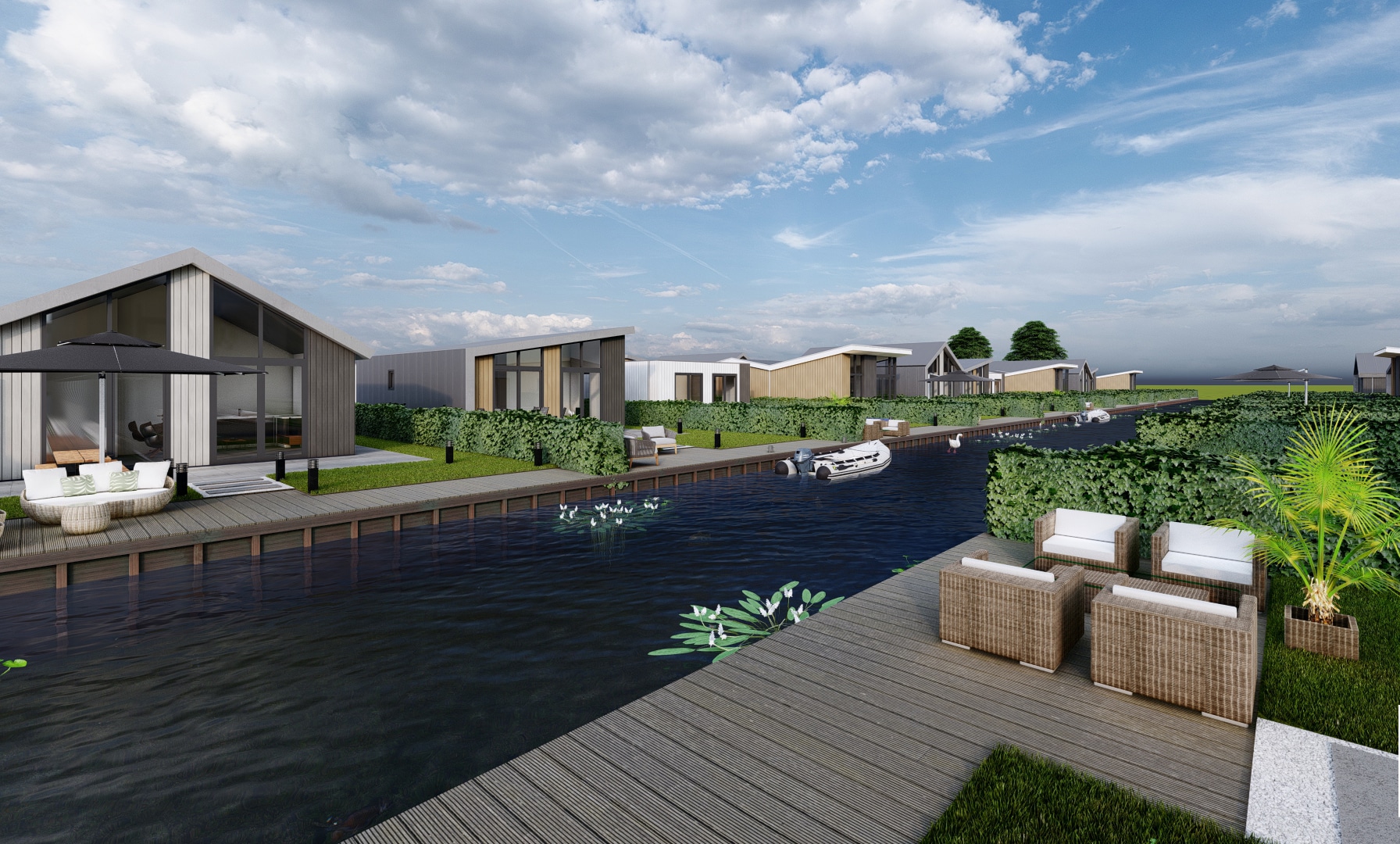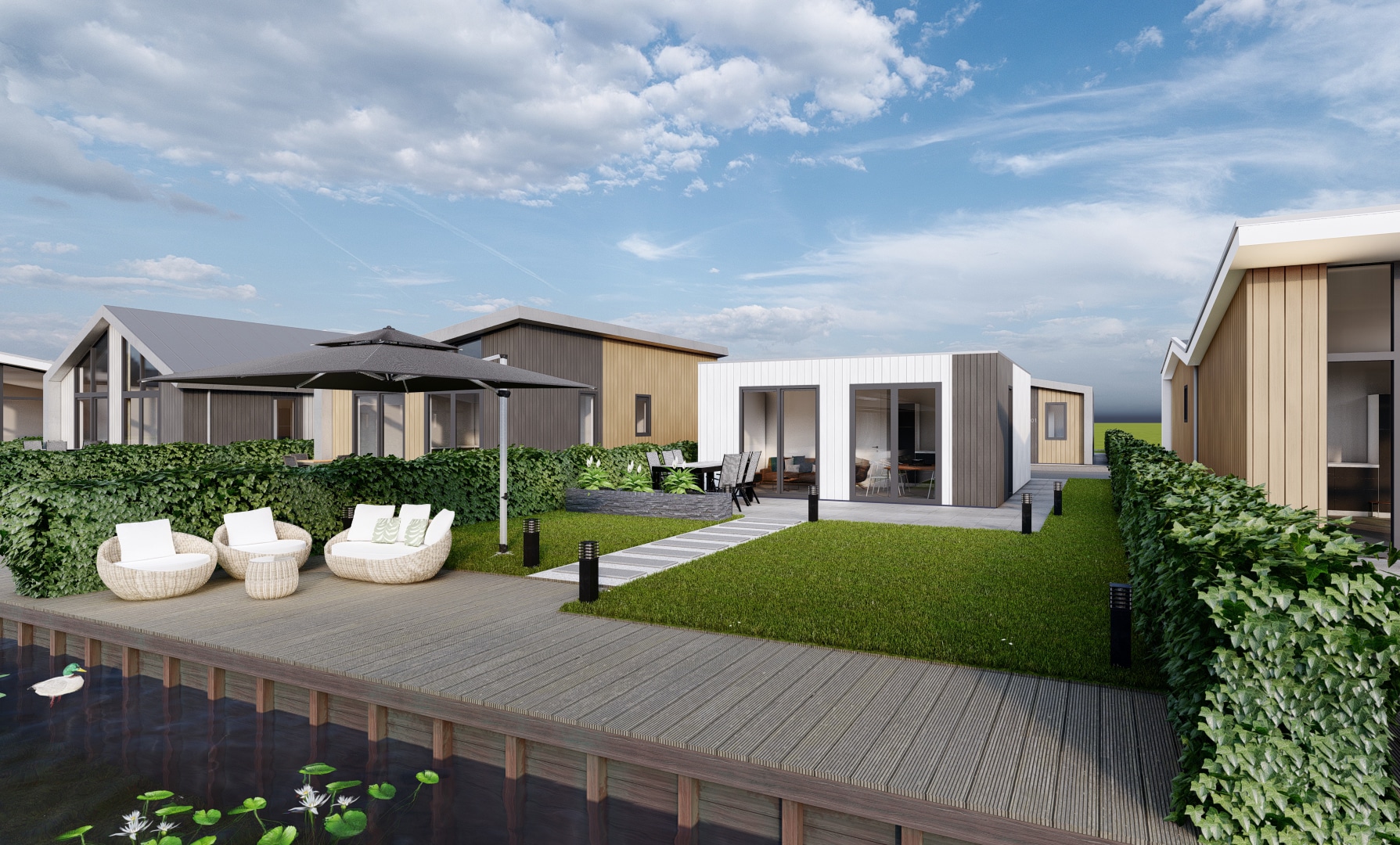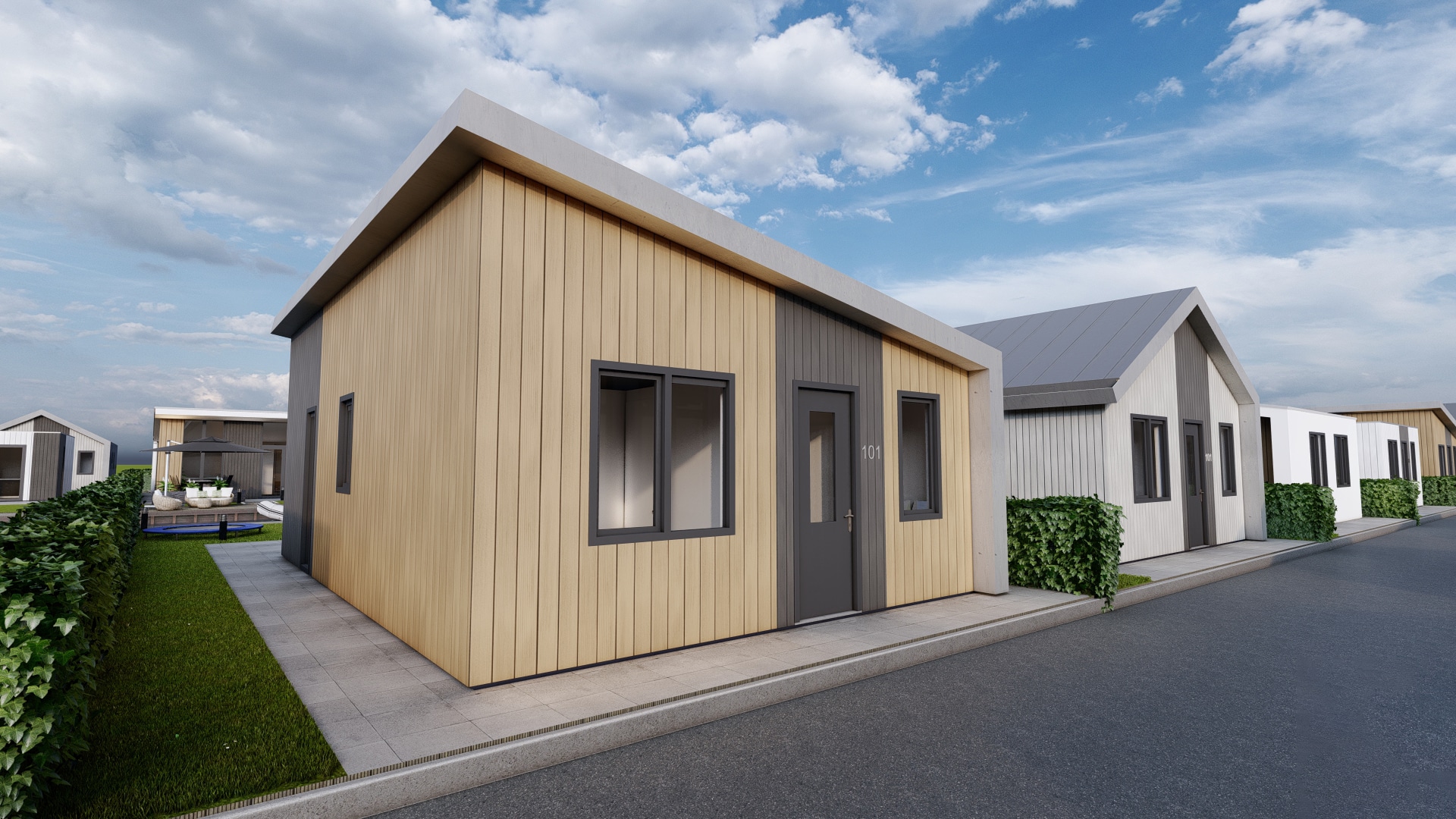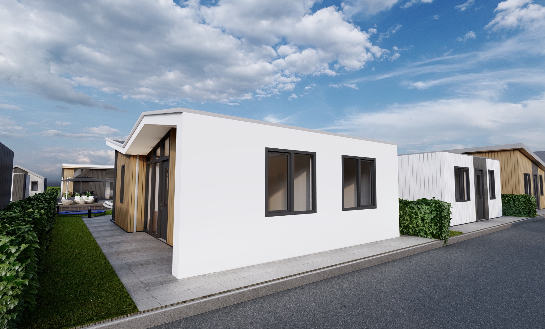 Op recreatiepark De Groote Vliet worden de komende jaren tientallen nieuwe recreatiewoningen gebouwd. De eigenaren waren op zoek naar nieuwe varianten die passen bij deze tijd. Studio S3 heeft binnen de kaders van de gemeente 4 moderne recreatiewoningen ontworpen.
